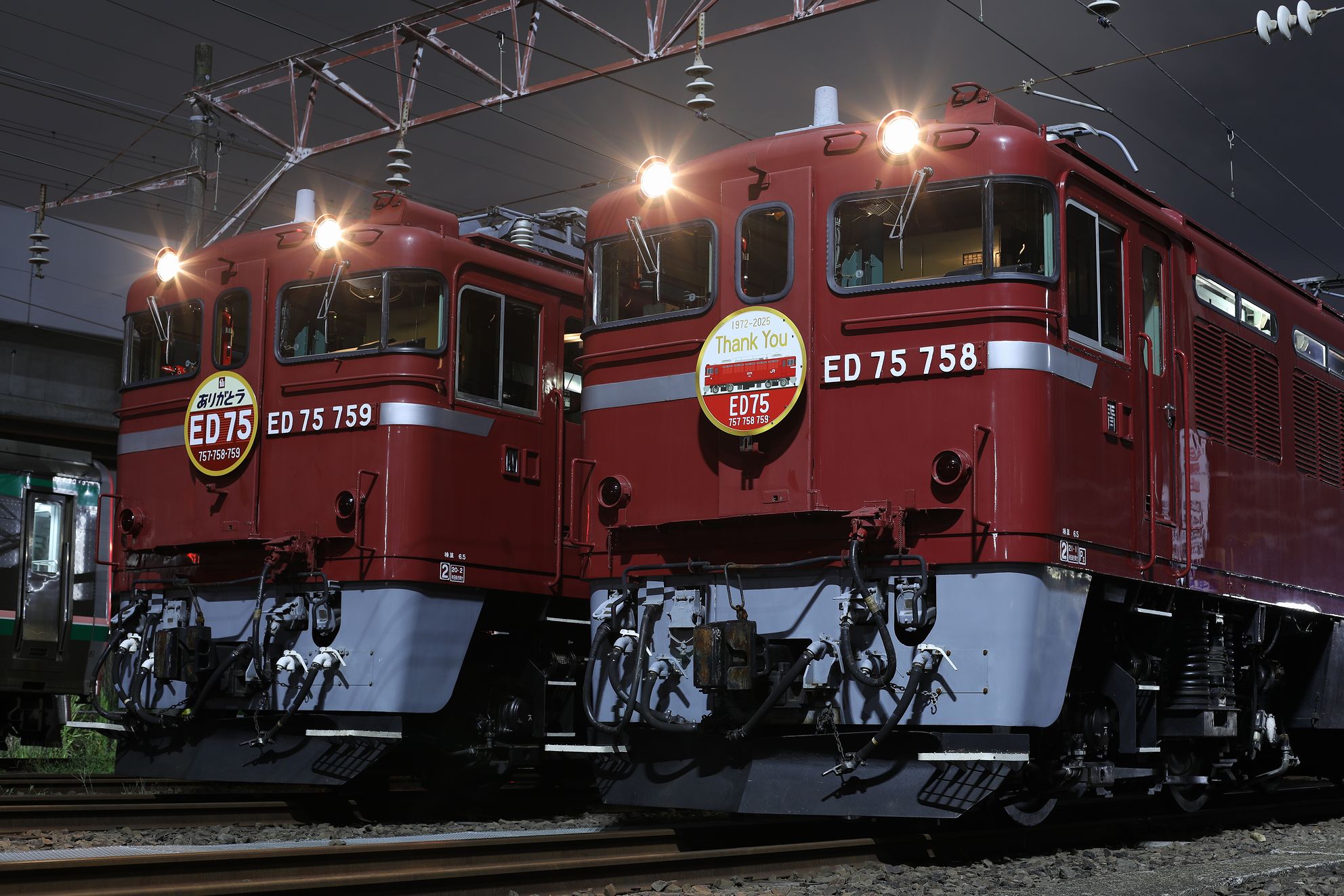 | ■1968〜2025年に活躍した交流電機の雄、ED75の情報とあなたの思いをお書きください。 ■東北本線、常磐線、奥羽本線、海峡線、ED79、EH500、EH800情報もOKですので、よろしく。 ■添付ファイルは最大3つまで、合計容量4MBまで可能です。 ■添付ファイルを付けるときは投稿時のプレビュー機能を使わないで下さい。 ■どなたでもご自由にご投稿下さい。 |