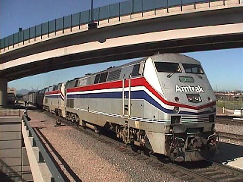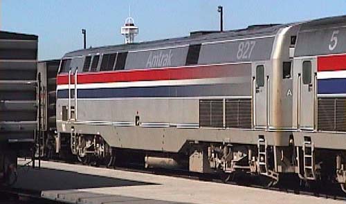 大陸横断鉄道としての長距離列車をはじめて見た。先頭に立つのは新鋭800型電気式ディーゼル機関車の三重連。デンバー・ユニオンステーション到着から発車まで、車両をじっく りとみる。 |