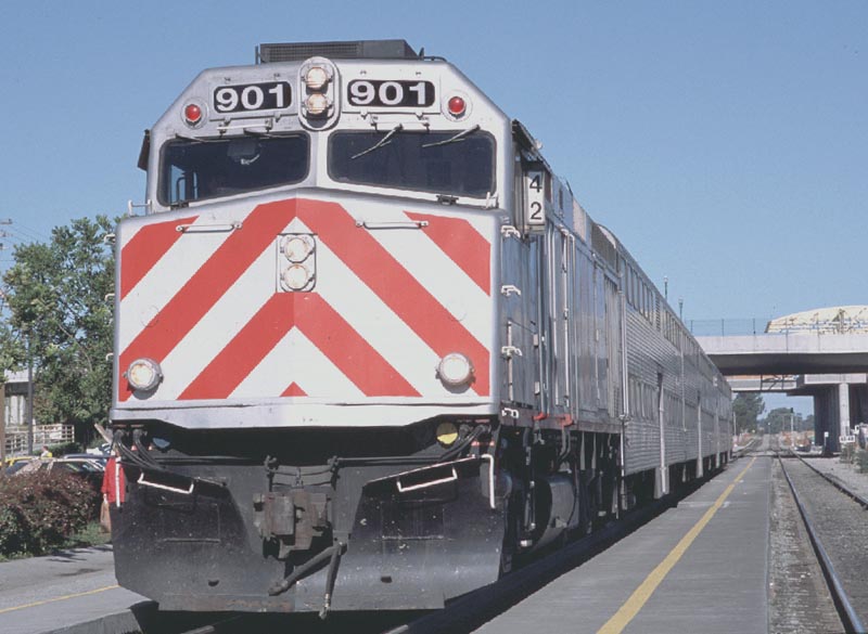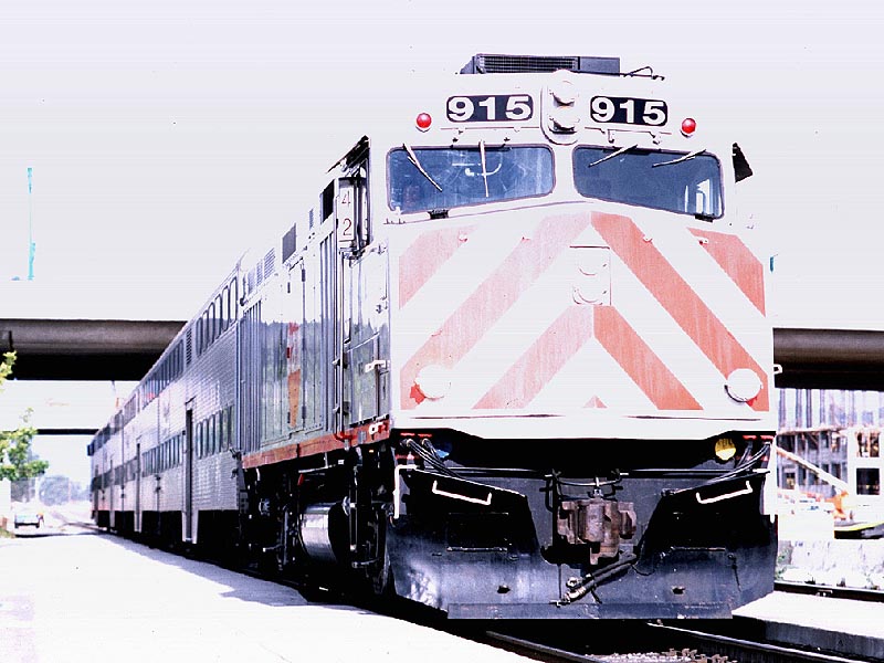 アムトラックでもお馴染みのF40-PH2型がプッシュする2階建列車