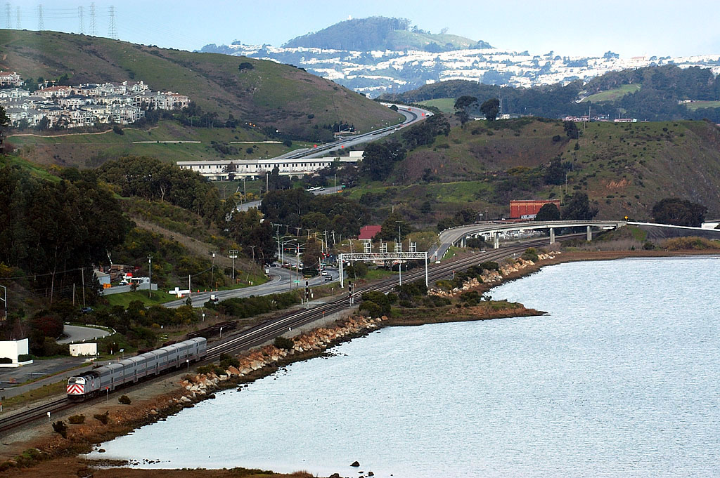 沼地の大俯瞰。列車を拡大してみると、機関車は923号です。1時間ほどでサンフランシスコまで行って折り返して来たのですね。