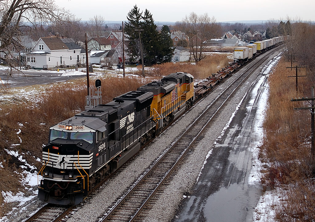 バッファローのダウンタウンから南へ数kmの場所にあるNSのヤード。到着早々NSの機関車が見えたので、幸先はよかった。しかし1時間待っても発車しなかった。