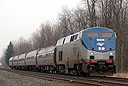 63と交換するかのように西方にヘッドライトが浮かびます。うーむ、列車密度は高いようです(嬉)。近づいてみると、なんだまたAmtrakか。64 Maple Leaf, CBN- New York Penn Station(NYP)。