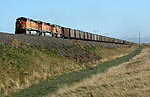 5分後、今度はすぐ北側の築堤をBNSFのフルコールが下ってきた。 |