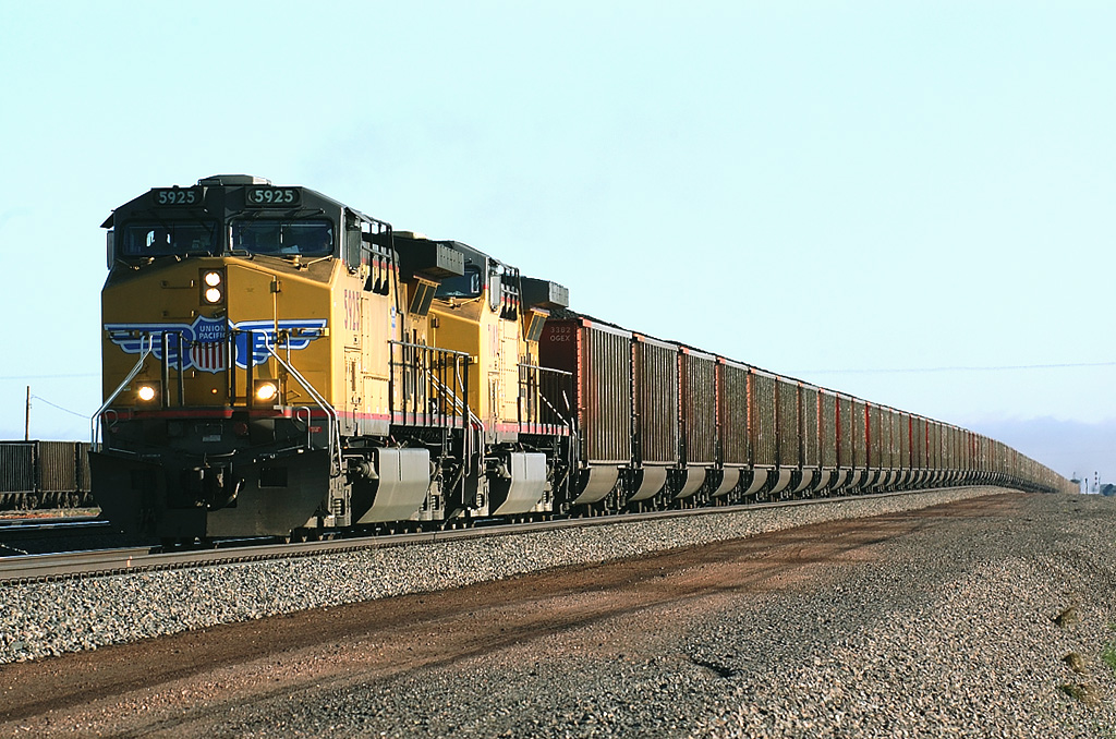 ほどなく、BNSFエンプティコールの隣に停車していたUPフルコールが南に向かってゆっくりと発車していった。後尾にはSP塗装のAC4000がヘルパーに付いている。この黒にはいささか興奮する。去年訪れたカホンではSP塗装機には全く会えなかった・・・