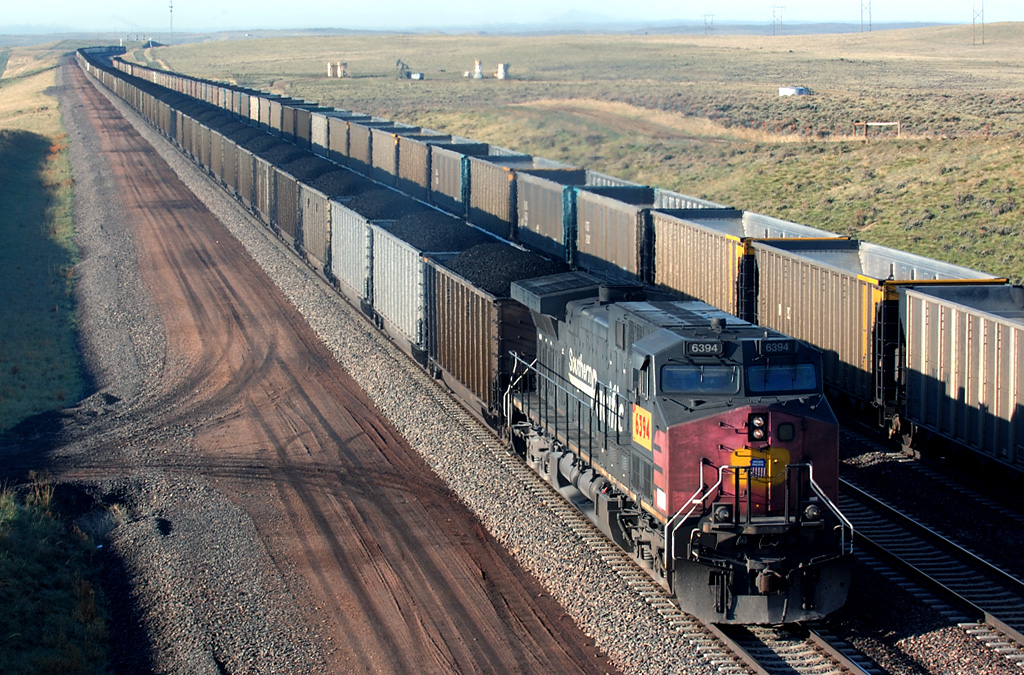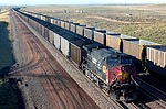 Billから南下するフルコール。SP塗装機が見られるのは嬉しい。後方は59号に沿って追い駆けて来たBNSF空セキ列車。