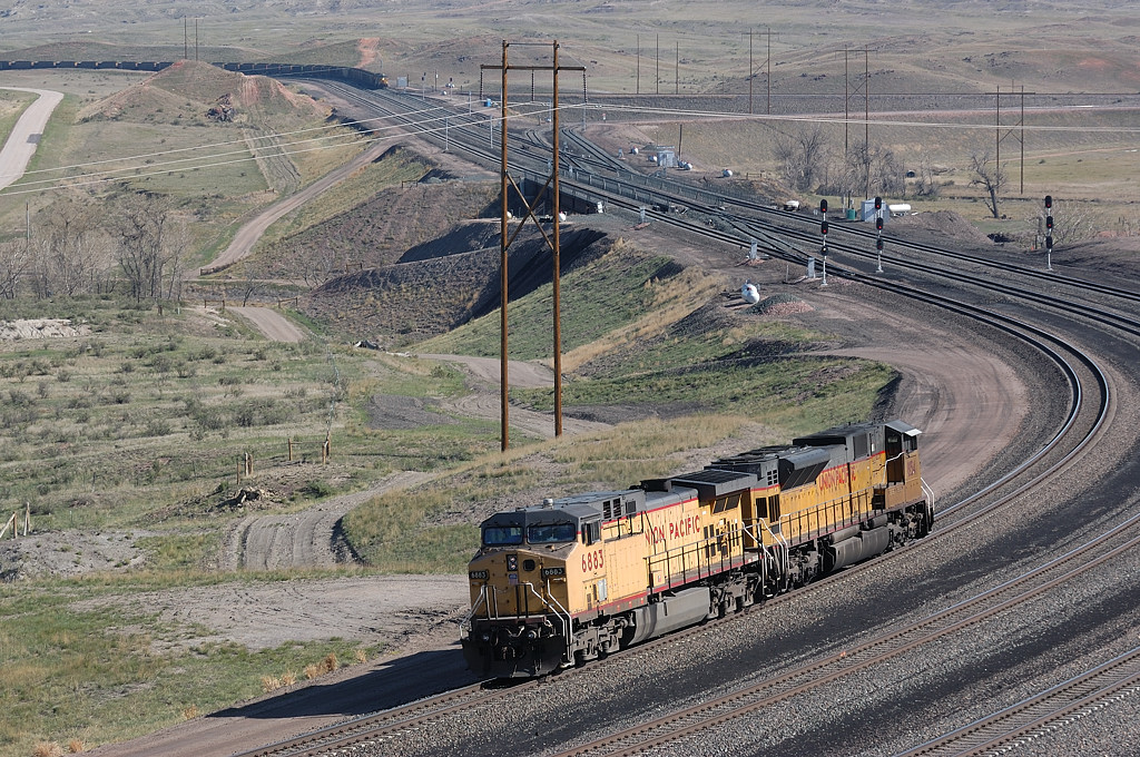 NaccoジャンクションからOrin Lineと別れ、North Antelope Mine方面の支線に向かうUP列車