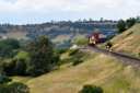 大カーブ(Horseshoe curve)のあるジェームズへ急ぐ。30分ほどで到着しまずは側線で待つと、ホンの数分で列車が来た。ゆっくりと峠を下っている。 |