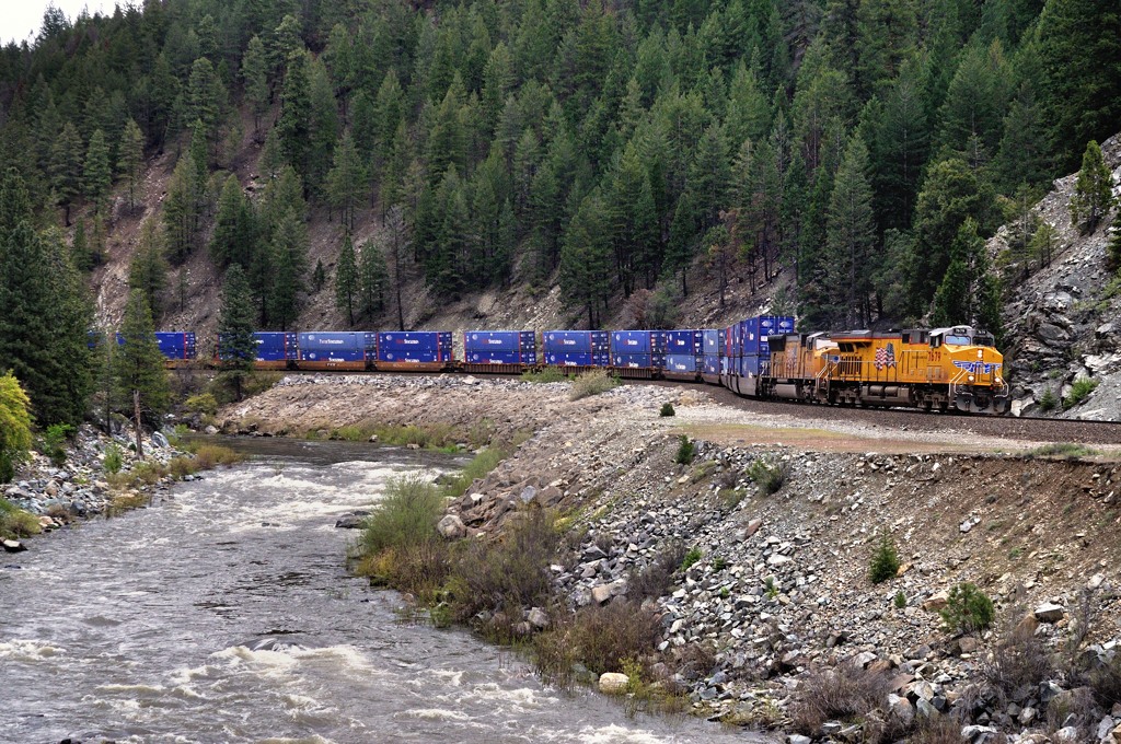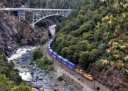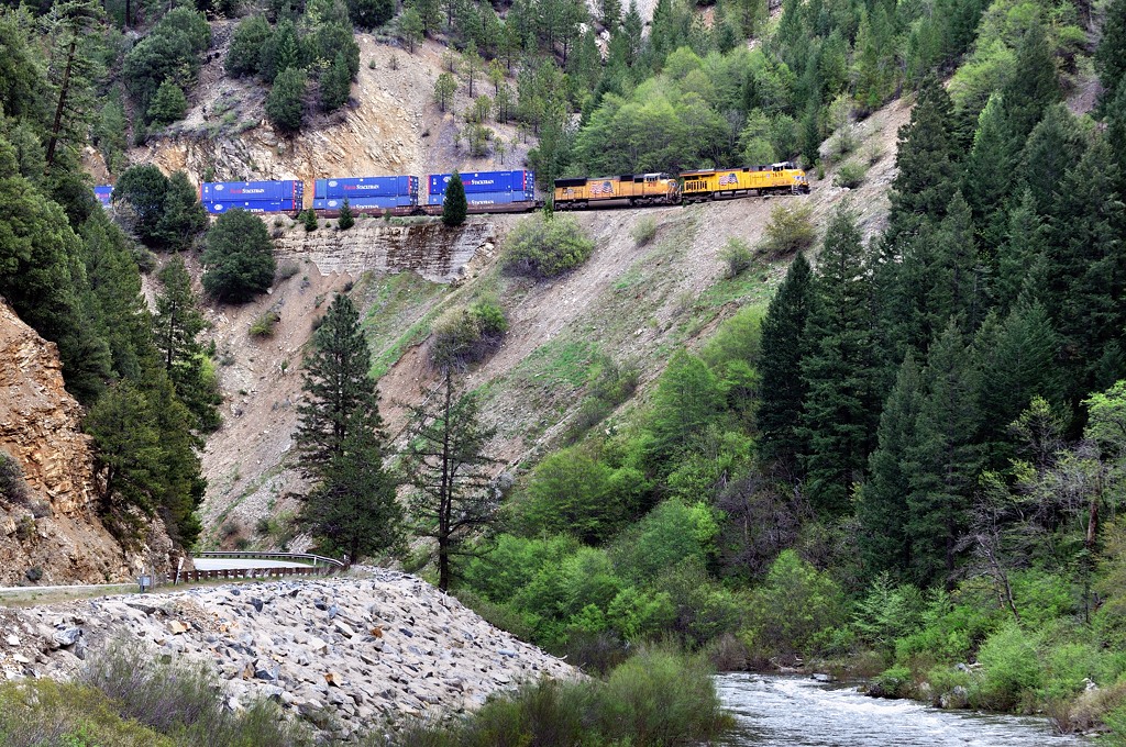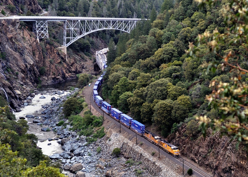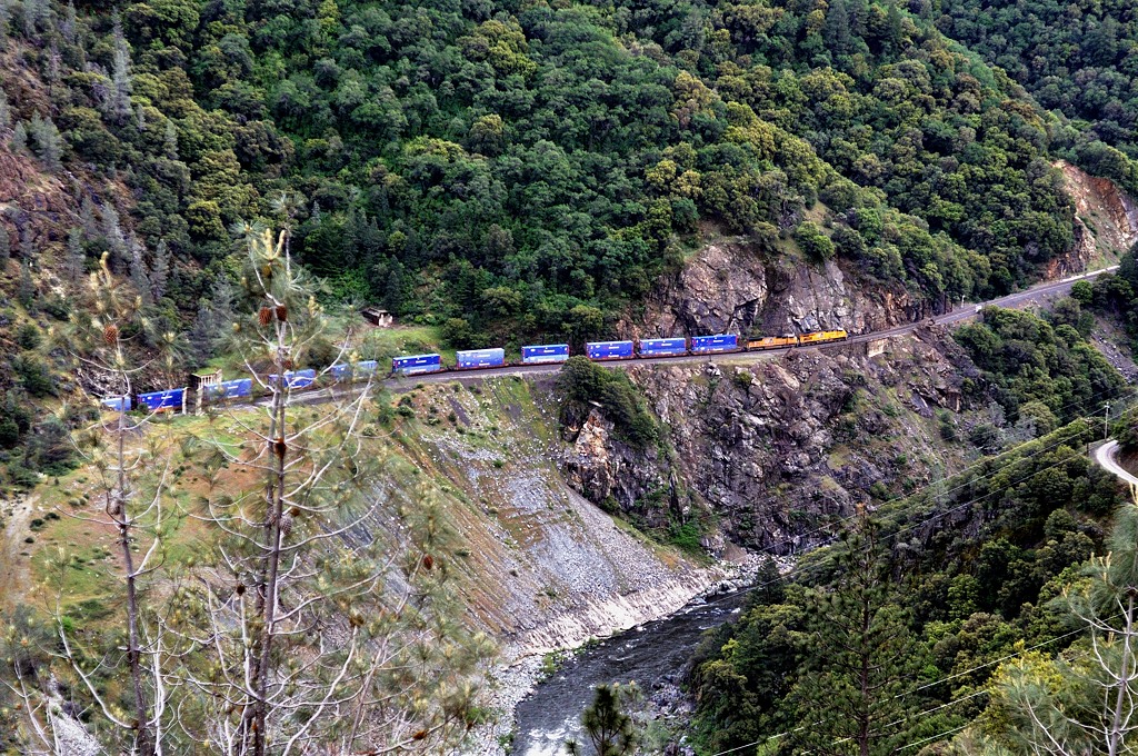 ベルデン(Belden)付近を行く。峡谷に沿ってトンネルがいくつも見られる。 |