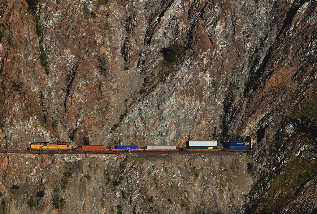 Poeを抜けさらに峡谷を下る。ここで背後から汽笛が聞こえた。そちらに回ろう。 |