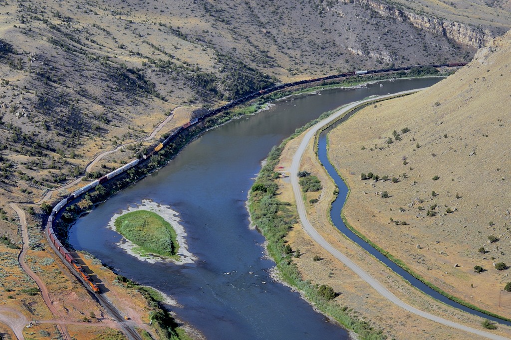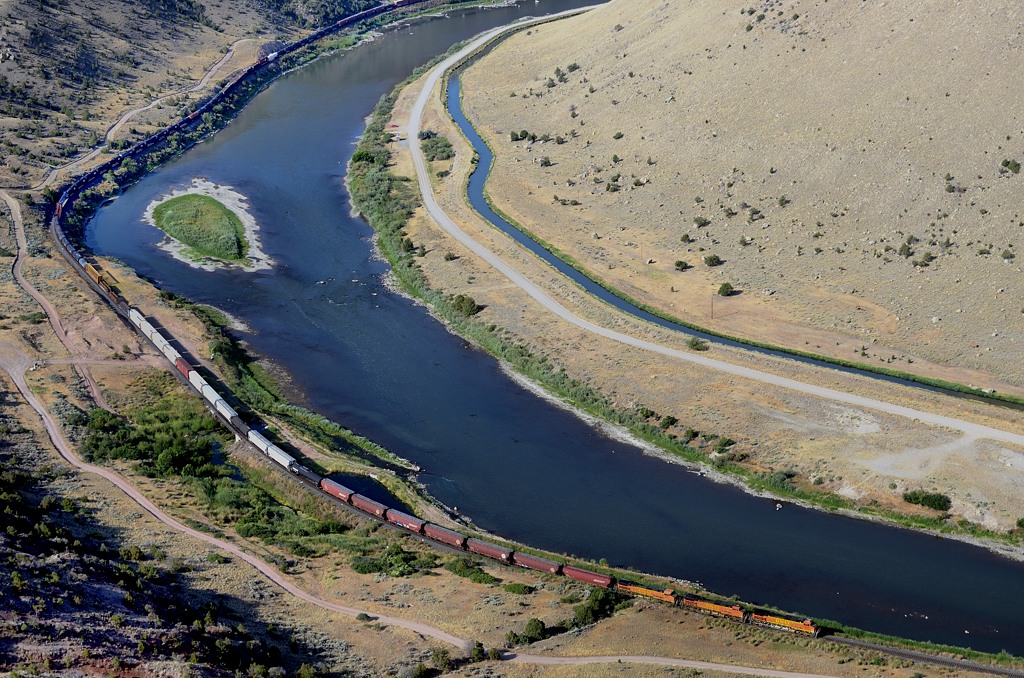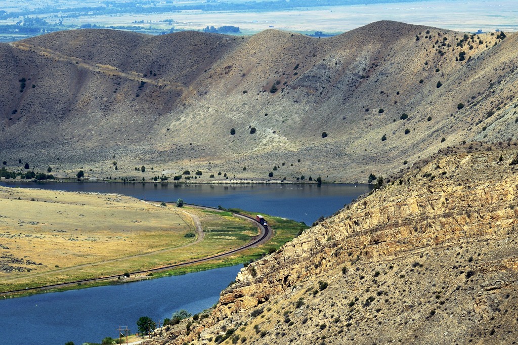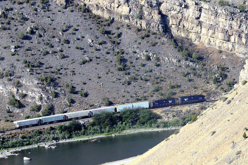 MRLはもっぱら山岳線。ミズーリ川は豊かな水量を湛え、その間を蛇行しながらゆっくりと流れます。ロンバード峡谷はその白眉で、人里離れたスケール感が魅力です。順光の撮影ポイントを探しながら終日この峡谷沿いで撮影しました。