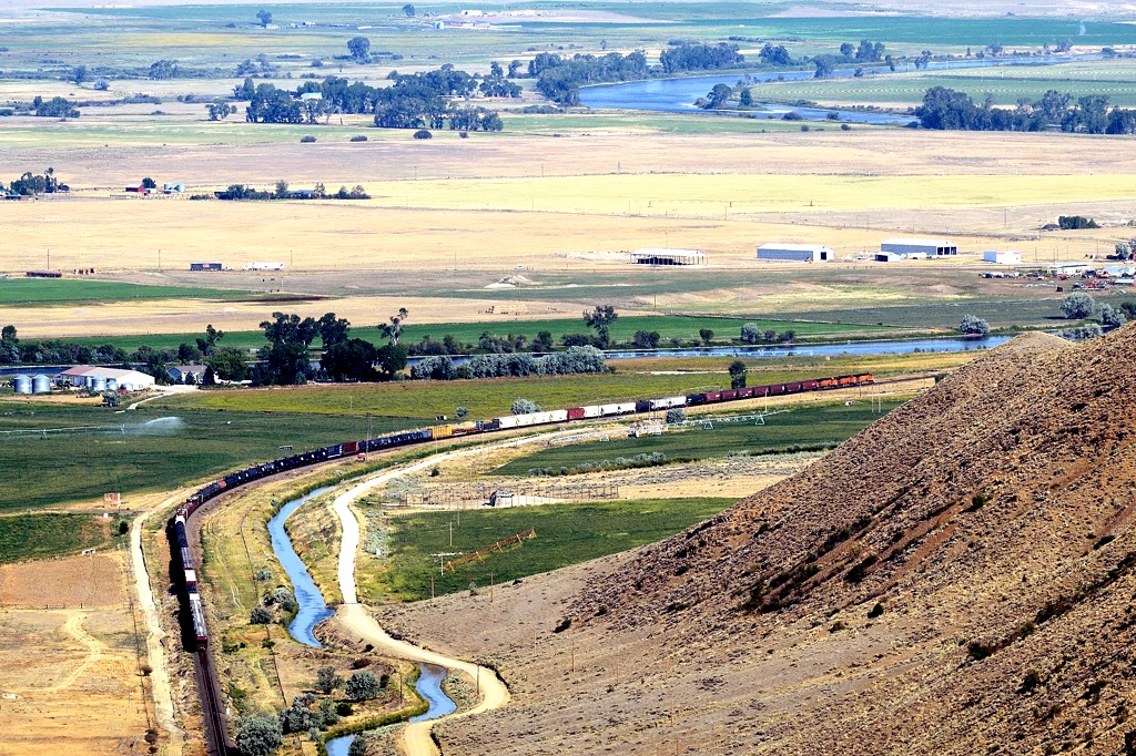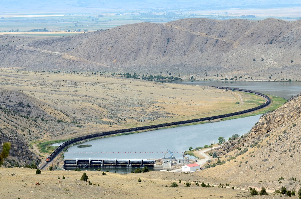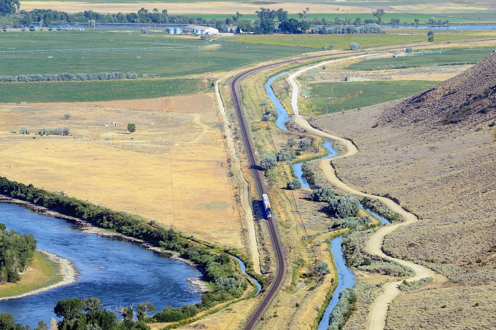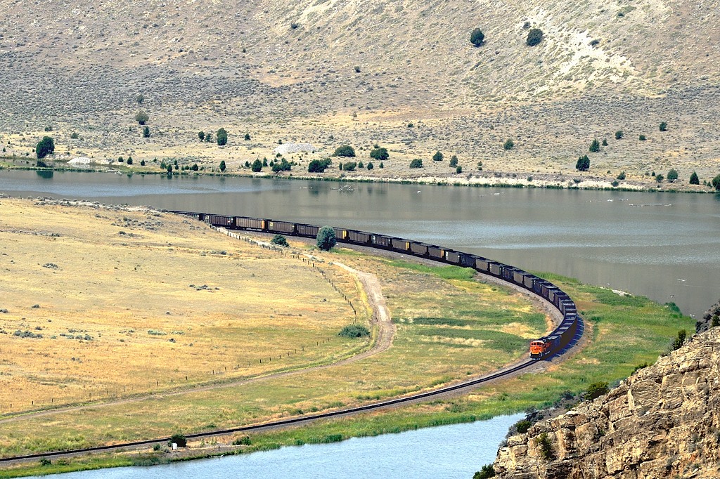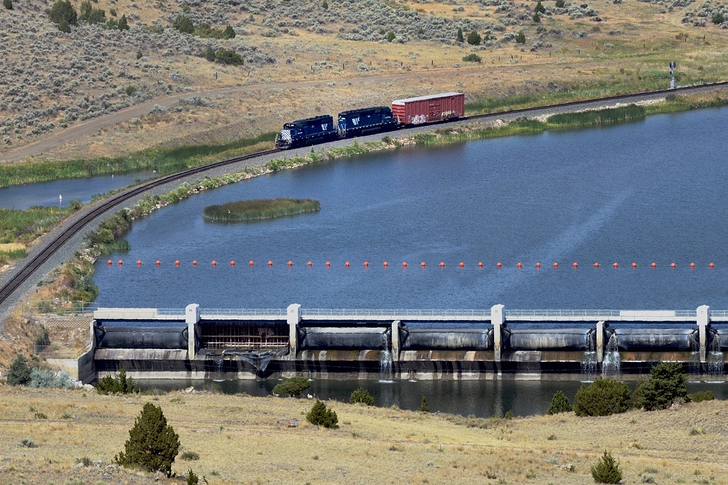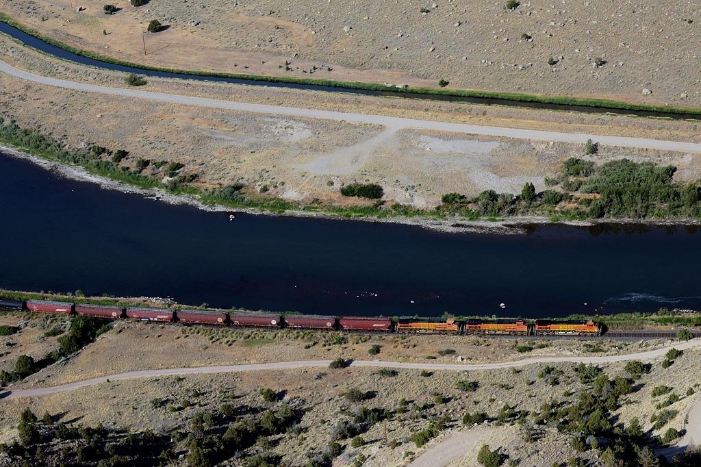 ![]() 朝は東側から。6時半にホテルを出発して、モンタナの茫漠とした大地を1時間ドライブして目的地に到着。しかし列車が全く来ません。より良い撮影点を探しているうちに、付近で一番高い場所にたどり着きました。さらに1時間半待って、ようやく来たのが、このかわいい区間列車でした。 ![]() 2両の機関車がたった6両の貨車を牽いて峡谷に迫ります。灌漑の水路が線路の両側に見えます。これらは上流のトストンダムから引かれています。 ![]() まるで模型のようです(RPN掲載)。 ![]() 大きくU字カーブを切って、入り組んだ峡谷へ去ってゆきます。トストンダムはすぐ先です。 ![]() かわいい区間列車と交換で、北西に向かうジェネラルフレイトがやってきました。ううむ、側面に日が当たるうちに来てほしかったところです。対岸の水路も、トストンダムから引かれています(RPN掲載)。 ![]() BNSF三重連が眼下に迫ります。残念ながら補機は付いてないようです。 ![]() 機関車はどれもDash-9です。10年前にタイムスリップしたかのようです。 ![]() ロンバード峡谷を出て、列車は加速してゆきます。 ![]() 列車が来る気配がないので、南側に移動します。矢印が先ほどまで撮っていた場所です。よく登りました。近くまで道路がありますが、それでも15分ほど歩きます。 ![]() 3本目がやってきたのは、2本目から更に2時間経ってからでした。あれ、今朝南下していった区間列車の返しですね。 ![]() ボックスカー1両だけの超かわいい編成。がっかりでもあります。手前はトストンダム。 ![]() 列車待ちの時間が続きます。西側を見回すと橋が見えます。地図上では、ロンバード(駅)のあたりにミズーリ川を横断する橋があるので、きっとそれでしょう。一目でもう使われなくなった橋だとお気づきでしょうが、撮影時には完全な暇つぶしでしたので、橋脚の手前で橋が切れていることに気づきませんでした。帰国してから、驚くべきことにこれはミルウォーキー鉄道(Milwaukee Road)の鉄橋だったことを知りました。現在のMRL線は当時SP(Southern Pacific)鉄道で、ロンバードははじめは鉱山、追って鉄道の交差点として維持された街でした。いまは何もありませんね。 ![]() 更に2時間経過。ようやく南下する長大編成を捉えることが出来ました。4重連の石炭列車で、4両目のユニットはワーボネット塗装です。パウダーリバーに石炭の積み出しに行くのでしょうね。写真中央の水路橋で、灌漑用水を対岸に導いています。 ![]() 迫力ありますね。後尾に単機ながらヘルパーが付いています。 ![]() 大きく身をくねらせて、トストンダムを通過してゆきます。峡谷とその向こうに拡がる平原がスケール感たっぷりです。 ![]() 大きなカーブを切って峡谷に消えてゆきました。地図を見るとこの先で180°方向を変えるので、先回りしてみます。 ![]() 着いたところがロンバードでした。列車の先頭にぎりぎり間に合った、つもりでしたが地図にあるオーバークロス橋(記述)が壊されていて、撮れませんでした。後追いは逆光ながらいい感じです。 ![]() ゆっくりとボーズマンに向かって去ってゆきます。 この後は西側の定番の雄大なアングルに向かいました。ところがフェンスががっちり作られており、近寄れません。仕方ないので付近で新アングルを開拓することにしました。 ロンバード峡谷の1日(2)へ進む |