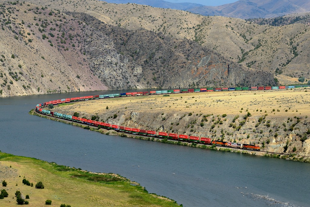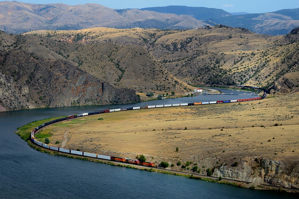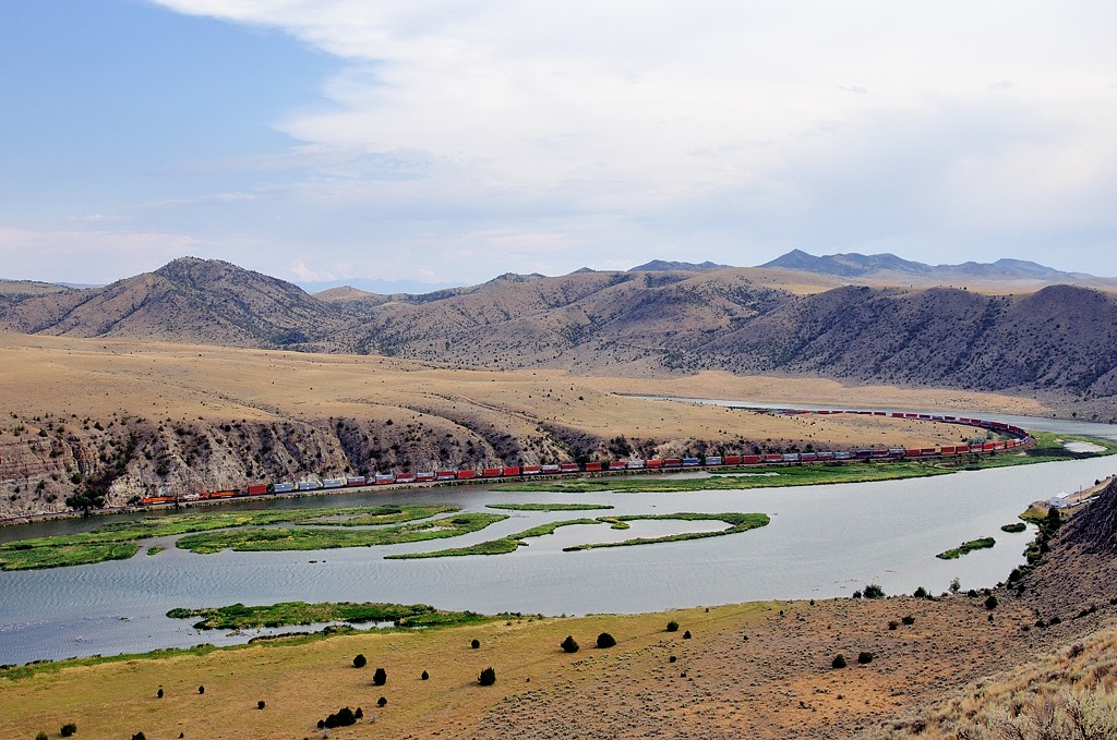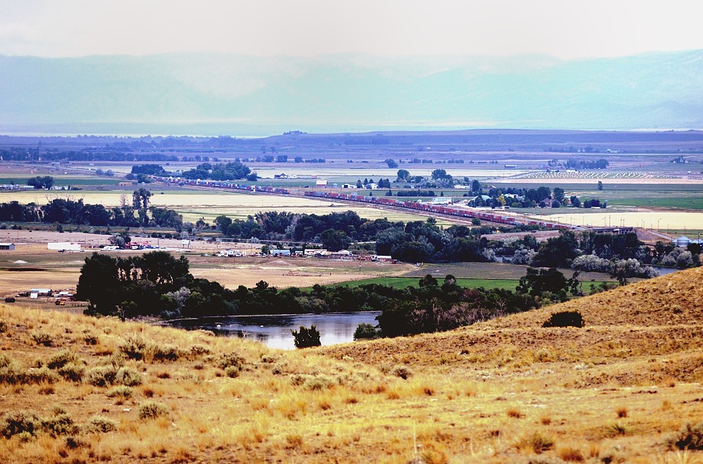 ![]() ロンバードでの撮影から4時間弱、17時を過ぎてやっと列車を捉えることが出来ました(RPN掲載)。いい光で、コンテナも2段びっしりです。 ただ、編成後尾が切れるので北側に移動してS字にくねる姿を狙いたいものです。窪地が目の前にあるので、いったんクルマに戻って1kmほど迂回します。 ![]() 車を走らせて目当ての丘に移動中、遠くからタイフォンが微かに聞こえてきました。続行で列車が来るようです! ところが「この先は徒歩のみ」の立て看板に行く手を阻まれました。タイフォンに加えて列車の走行音が迫ります。が、列車は尾根の向こうで見えません。クルマを下りて、いやぁ走りました。その甲斐あって、満足の一枚が撮れました(RPN掲載)。 ![]() もういいやと思うと、次々と列車が来るのが鉄の常。撤収中に背後から汽笛が聞こえ、慌てて撮影ポイントに戻ると、西行きが来ました。先ほどの東行きとこの先のロンバードで交換したのでしょう。急に忙しくなってきました。 ![]() だんだん曇ってきましたが、帰国後画像をレタッチしてみたらなかなかいい感じになりました。 ![]() これで本当におしまいと思ってクルマまで戻ると、あれあれ先ほどの西行きダブルスタックが遠くに見えます。画像の右手からゆっくりと遠くトストン(駅)に接近しています。よくみると、左から東行きダブルスタックがトストンに進入してきます。ということは、10分ほどでここロンバード峡谷に迫ってきます。一瞬、もう1本撮ろうかと欲がでましたが、既に空はすっかり曇ってもうよい写真は望めません。ここで終わりにして、宿泊地ヘレナ(Helena)に向かいましょう。 ![]() えー、ヘレナに向かう途中、ウィンストン(Winston)で西行き貨物に追いついてしまいました。 ![]() ウィンストンでは、東行き貨物が交換待ちしていました。あと半日早く来てくれればよかったのに・・・ ![]() そして、西行き貨物にもう一度、ヘレナに近いL F Baum Rd.で追いついてしまいました。時刻は19時を過ぎており小雨がぱらついて来ました。これでホントのホントにおしまいです。このあとすぐに本降りになりました。 ←ロンバード峡谷の1日(1)へ戻る ヘレナからモーラン峠へ→ |
