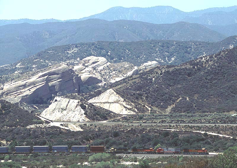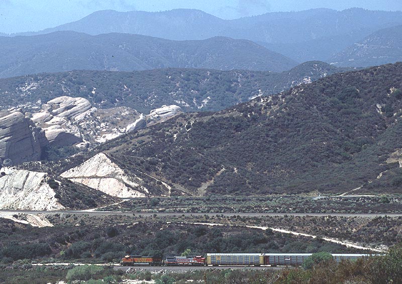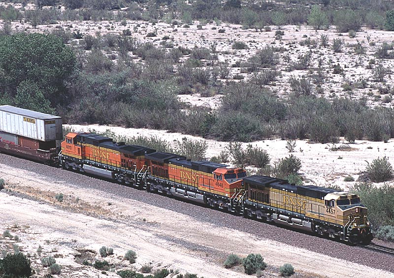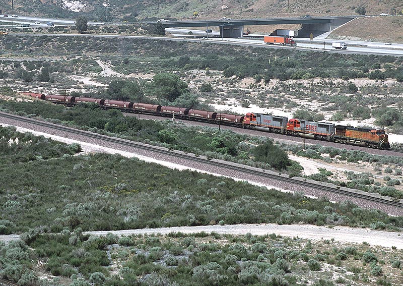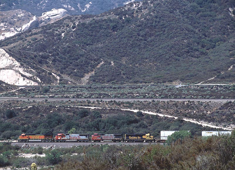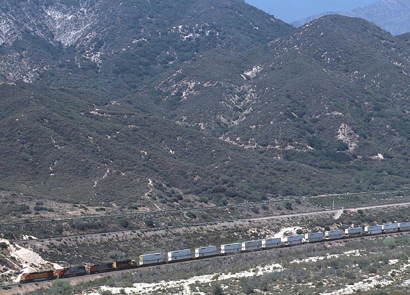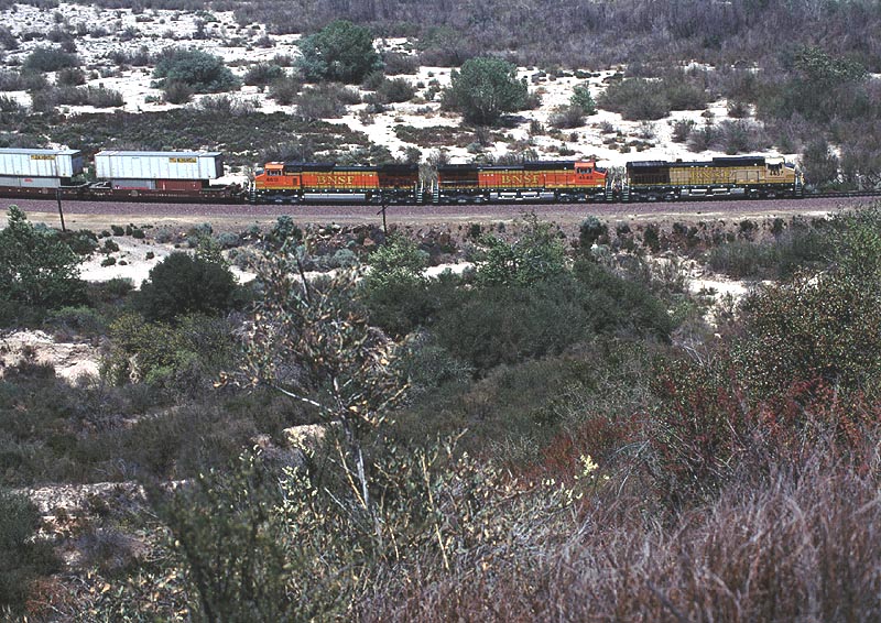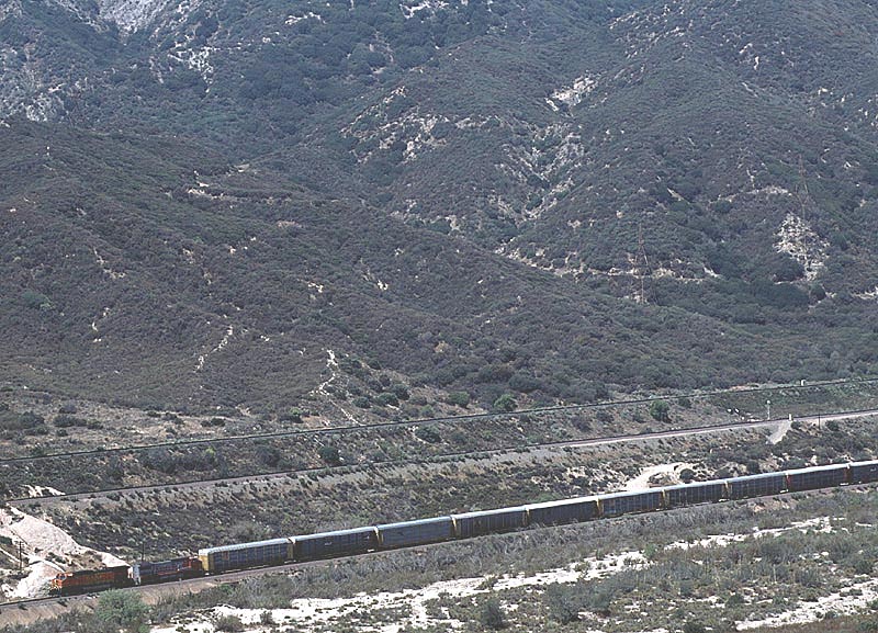 四重連が南行きのダブルスタックを牽引して,カホンを下ってきました.