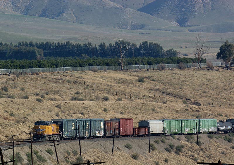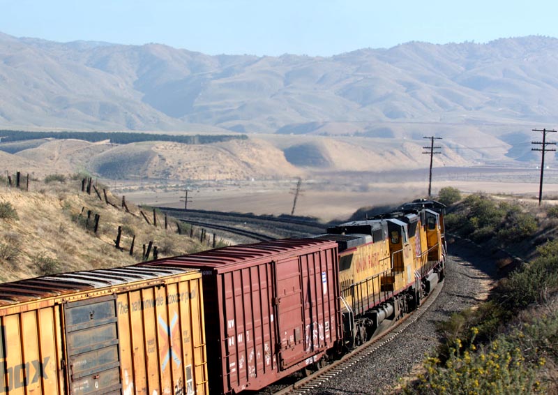 テハチャピ市内にまで一気に先回りし、線路が202番道路とオーバークロスする場所まで行って列車を待ちました。