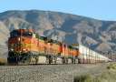 一夜明けて午前6時起床.清々しい朝だ.まずはMojaveのすぐ北の直線区間へ.複線のトラックが南南東に一直線に伸びる場所なので,東行き(LA方面行き)が来れば山をバックに綺麗な姿写真が撮れるだろう.ホテル発6:30,現地着6:35とホンの5分で到着.ここは去る1月,最後に列車を見送ったところでもある.ところが到着してみると太陽は真東からやや北寄りにある.これでは,仮に東行きが来ても正面左側(西側)はまだ影かな? さて,待てども列車は来ないまま30分が経過.スキャナにも反応がない.早くも待ち切れなくなって(笑),一気にBealville方面へクルマを走らせた.ところが10分としないうちに,東行きダブルスタックと交換.やられたー! 目前に迫ってきたCameronの出口でキックターン! 全速力でMojaveの直線に戻る.うまい具合に列車を追い抜けた.さらに峠に向かう西行き貨物とも交換した.なんだ,あと15分だけMojaveでじっと我慢していれば,東西2本の列車を撮れたはずだったのか.いささか間合いの悪い朝だ. しかしその気分も僅かで済んだ.Mojaveでは東行き貨物がばっちり撮れた.気をよくして峠に向かうと,さっきMojaveに戻る途中で遭遇した西行きのZ-trainがゆっくりとTehachapiからCableに向かうのが見えた.それでMarcelの出口でフリーウェイを降り,すぐそばで崖の対岸を行く列車を撮影,さらにBealvilleに向かった. |