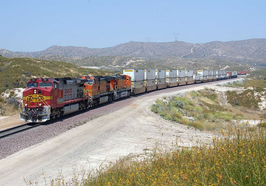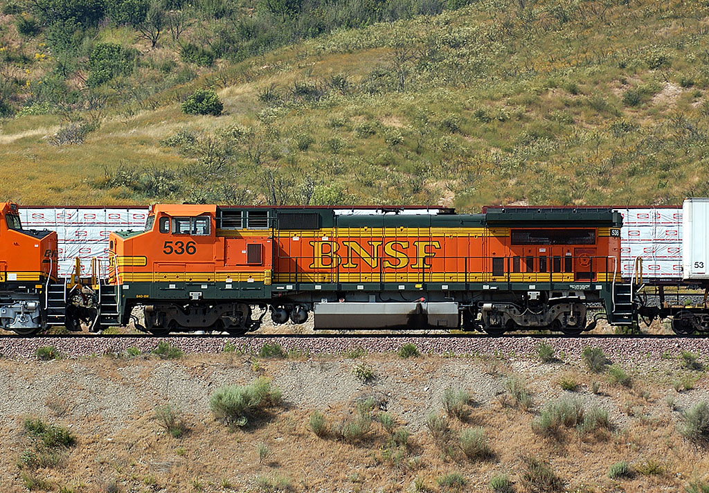 線路際に出ました。Main2を下るBNSFです。先頭がワーボネットで目立ちますね。 BNSF 761 + BNSF + BNSF |