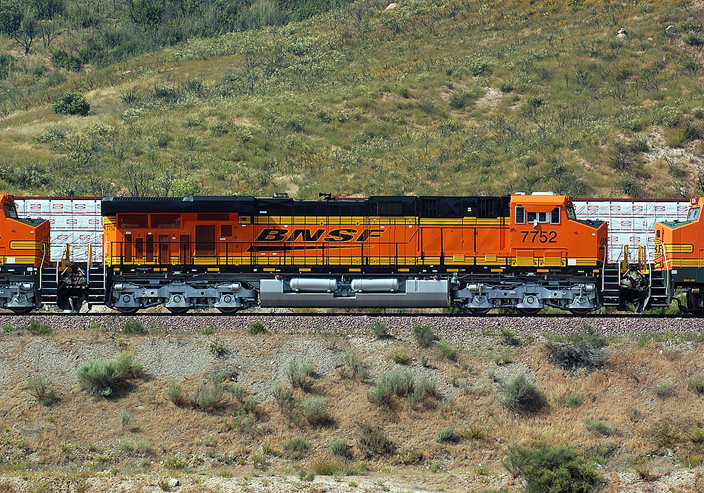 Main1をサミットに向かうES44DC重連です。荷物はベアテーブルであまり迫力がありませんでしたので、流し撮りをしてみました。あとでロードナンバーを見て、今朝一番に峠を下っていったBNSF四重連のうち2両が牽引していたことに気づきました。 BNSF 7752 (ES44DC) |