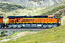 さて、サミット下です。DellとかHill 582と呼ばれているようです。Main 2をBNSFが下ります。 BNSF 5170 + BNSF 705 + BNSF 7695 |