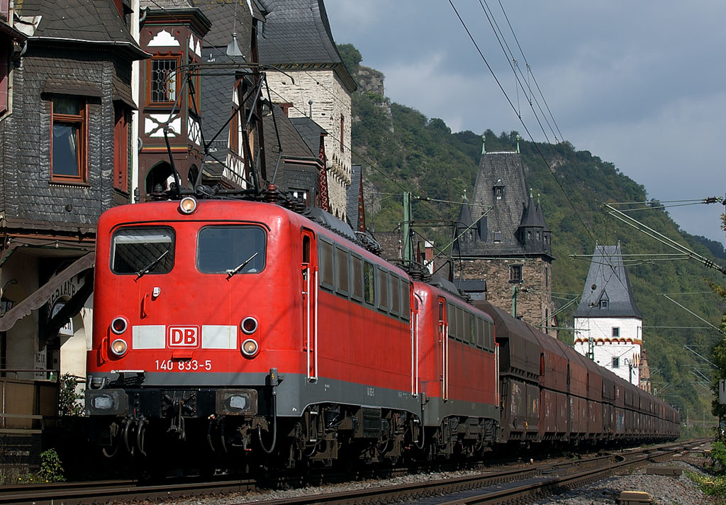 続いてまた左岸線に貨物!嬉しいですね.それも140型の重連です.光線も良くてバッチリです.800番台は143型のように重連仕様なのでしょうか. 140 833-5 , St. Goar-Bachrach |