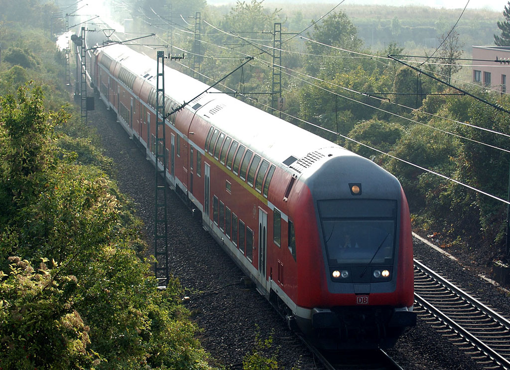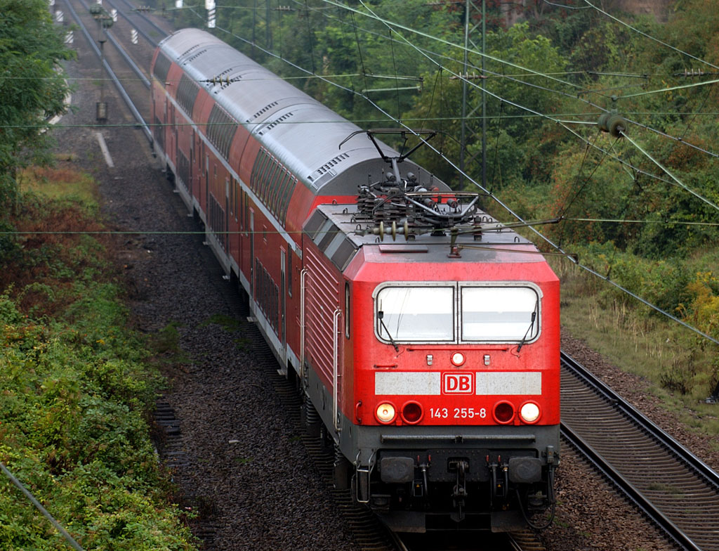 今度はMainz方向からRBが来ました.先頭の制御客車の2階席が1等車になっています.European Picture Galleryで見る限り先頭が1等車の画像はありません.珍しいのでしょうか??? 2階建客車+143 025-5, RB12762 (Mainz Hbf-Koblenz Hbf), Bingen Hbf-Bingen Stadt |