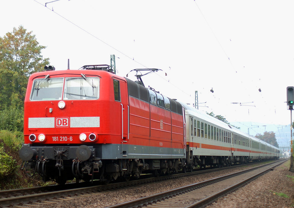 やって来ました! この場所での一番のお目当ては181型.線路際から捉えました.現在ではありふれたVerkehrsrot塗装の車両でちょっと残念. 181 210-6, IC351(Luxembourg-Frankfurt Hbf), Bingen Hbf-Bingen Stadt |
