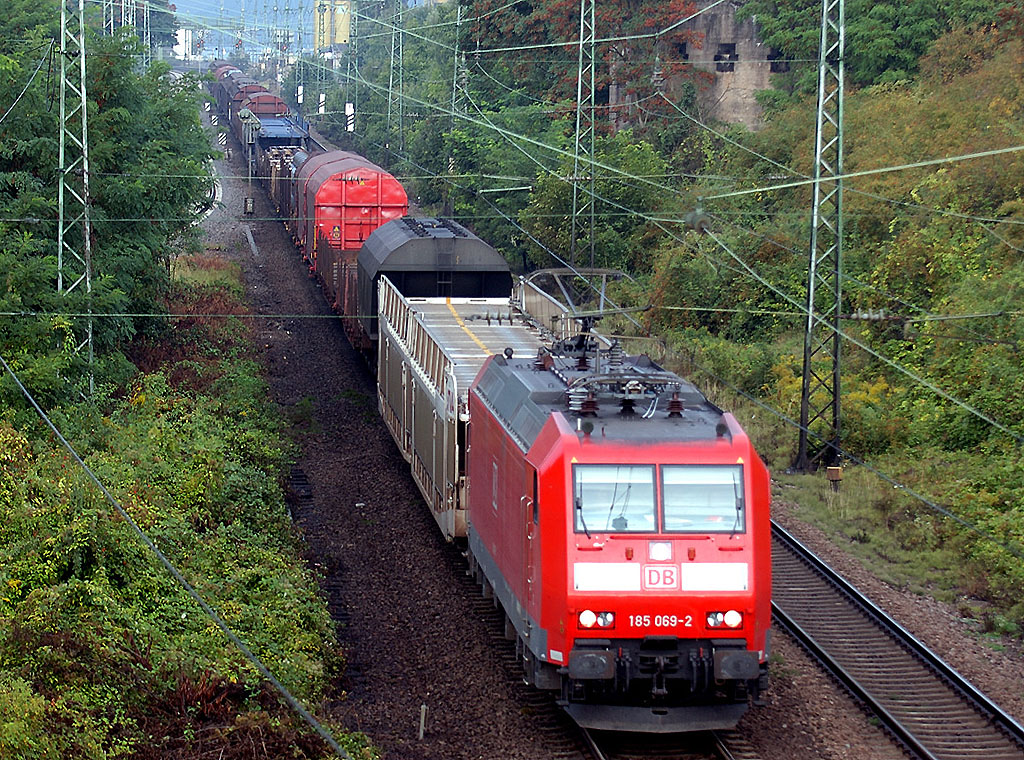 列車は次々にやって来ます.また貨物列車です.左岸線でわずか15分ほどの間に貨物列車を2本も撮影できるとはラッキーです.しかもここで185型を撮影するのははじめてです! 185 069-2, , Bingen Hbf-Bingen Stadt |