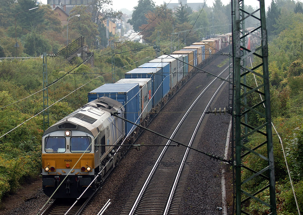 そのRB12775と交換するようにやって来たのは貨物列車です.左岸線の貨物列車は少なく,しかもERS社所有のPB08型の牽引です.撮影できてラッキーですね. ERS PB08型, Bingen Hbf-Bingen Stadt |