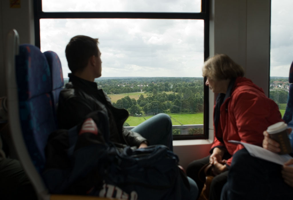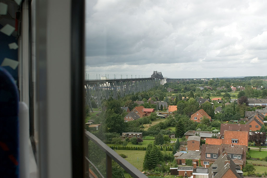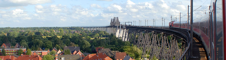 ドイツの北端は地理的にデンマークに繋がるユトランド半島の付け根を占めており、東にバルト海、西に北海を望みます。バルト海と北海を行き交う船にとってユトランド半島は600km以上の遠回りを強いられる邪魔者で、この問題を解決するためにユトランド半島の根本に運河が設けられました。これが世界三台運河のひとつに数えられるキール運河で、大型船が行き交う重要な国際運河です。 大型船の航行を制限しないよう、鉄道はずいぶん高い位置に鉄橋を設けています。2箇所ありますが、そのうちの一箇所、Rendsburg(レンズブルク)では運河のすぐ北側に町があるため、高い鉄橋と地上の町をループ線で繋いでいます。その景観が雄大で、ドイツを訪れる鉄道ファンならぜひ行ってみたいところです。 2007年7月、キールに用務があり、私はハンブルクに宿を取っていました。キールでの仕事がやや早めに終わったので、50kmほど遠回りしてレンズブルク回りでハンブルクに帰ることにしました。キールからレンズブルクまでの車窓をお楽しみ下さい。 |
