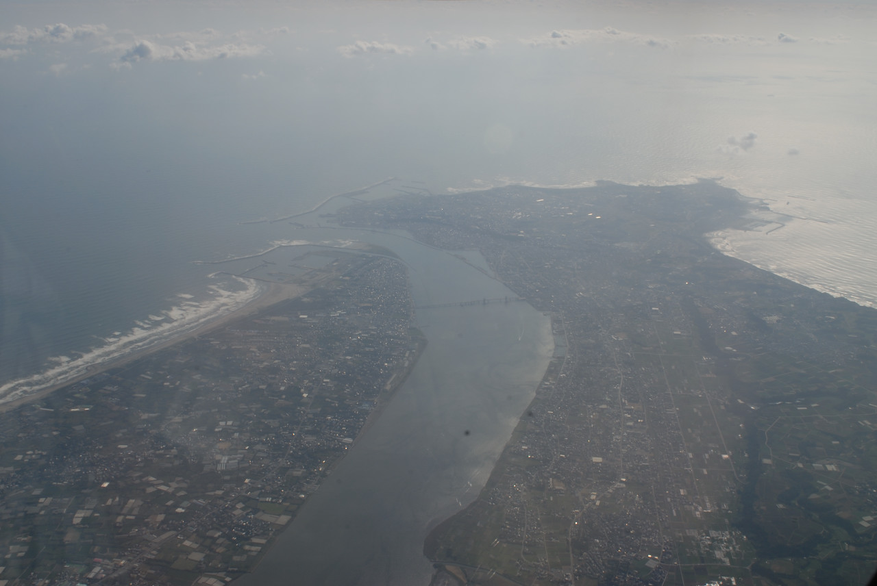 08:57:21 銚子と犬吠埼が見えてきた。まもなく成田着。 |