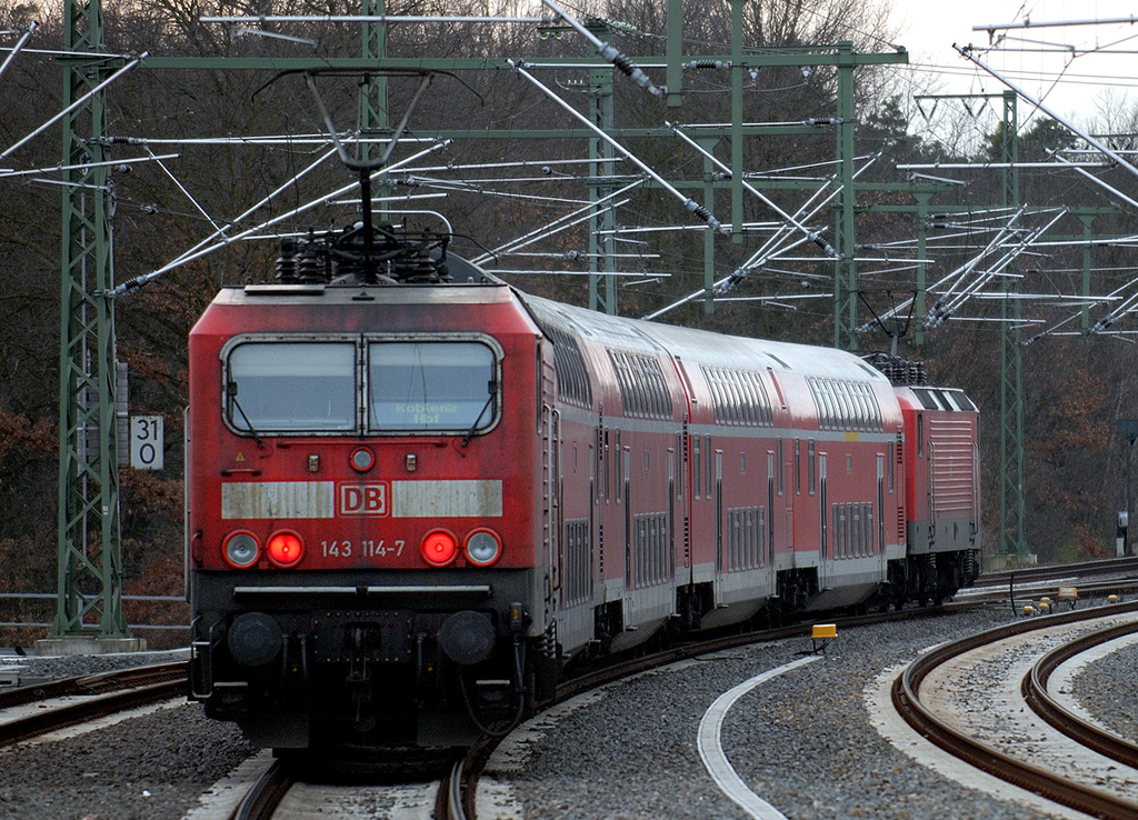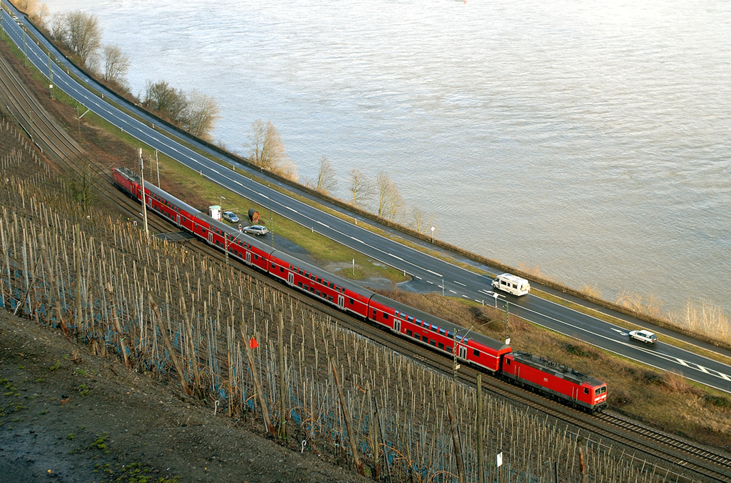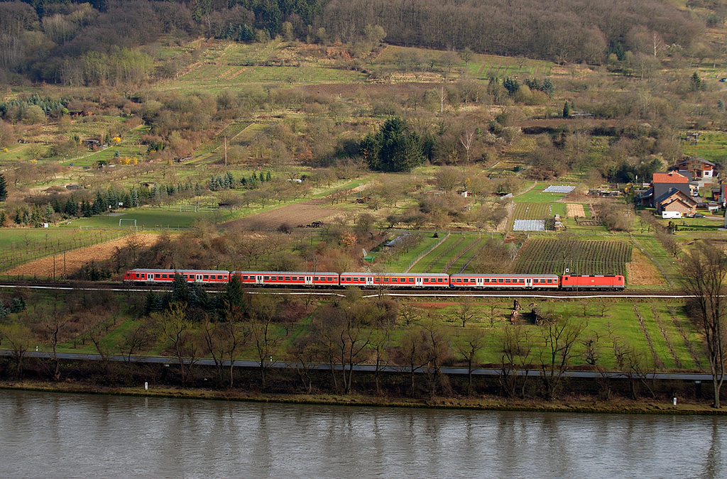 続いて143型牽引のMainz Hbf行きRBがやって来ました。私には、たぶん続行で来るECの露払い列車のように感じられました。 143 647-6, Boppard-Spay |