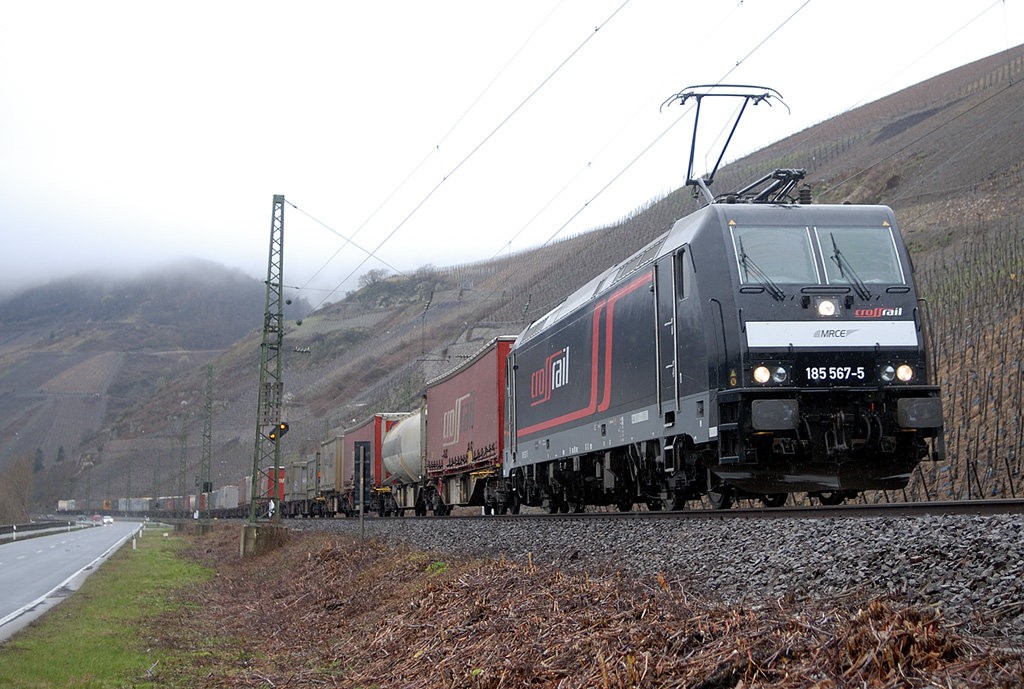 雨が小降りになったので再びライン川沿いに出てみます。すぐMRCEの185型が北へ向かって疾走してきました。 185 567-5, Boppard-Spay |