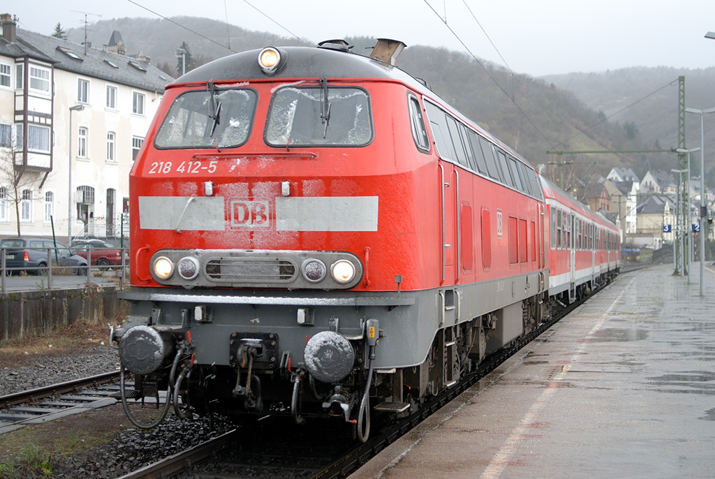 Hbfを訪ねてみました。Emmelshausenに至る支線用の218型+客車2連が寒そうに待機しています。 218 412-5, Boppard Hbf |