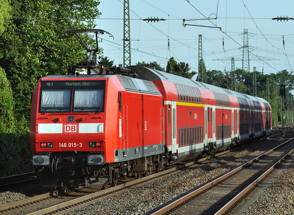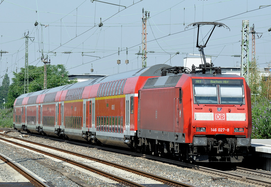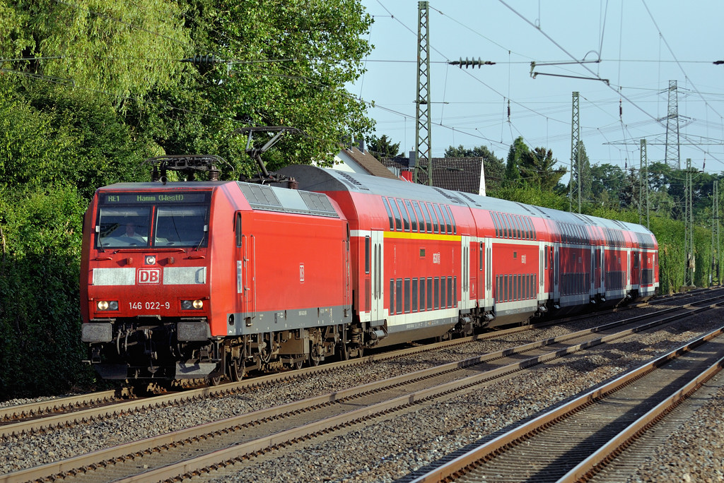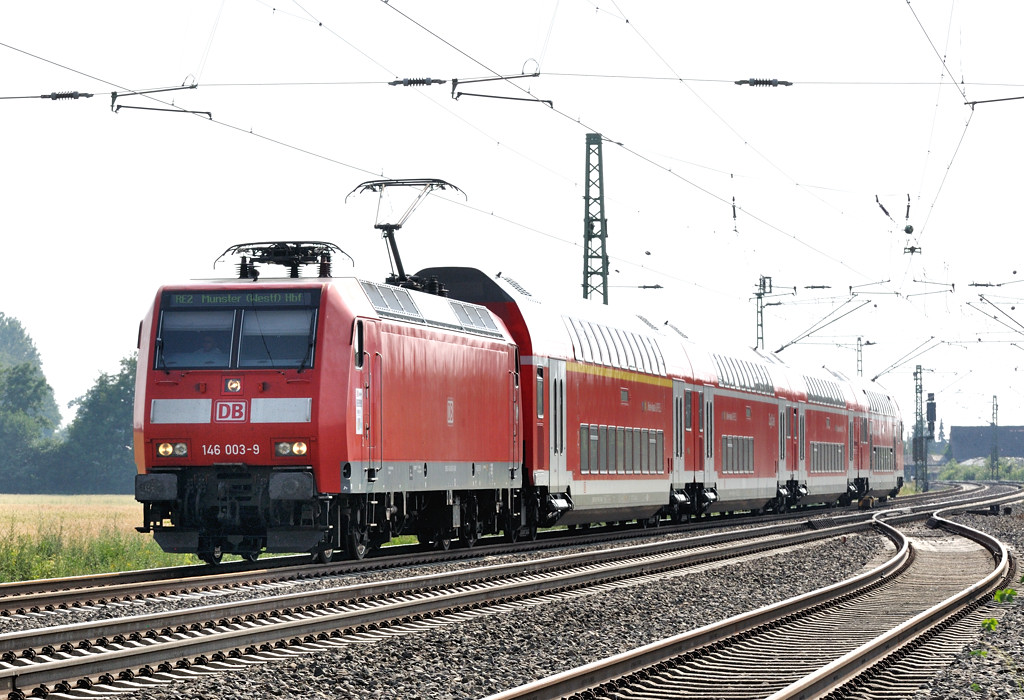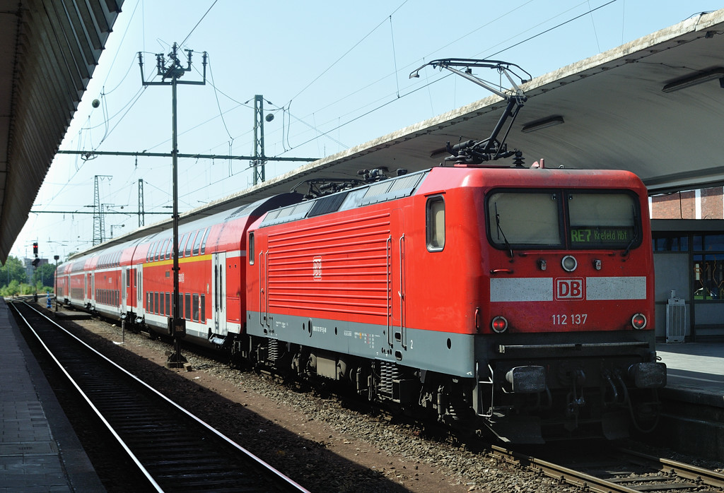 Ruhr地方には大規模なRE/RBネットワークとS-Bahnネットワークが出来上がっています。さらにトラムやバスも一体化して便利な交通網が構築されています。凄いなと思う一方で、一介の旅行者には複雑すぎてよく分かりません。 分かることは、もはや420型EMCは居らず、代わってEMU 422型や425型が台頭していることです。REには引き続きペンデルツークが元気に活躍しています。Thomas Cook時刻表2010夏・秋版をみると、REにはRE1~RE13の系統があります(ただしRE8~RE12は不掲載)。ネット検索すると、なんとRE1~Re17までの17系統があるようです。RBはRB21~RB99まで、さらS-Bahnが10系統以上あります。凄いものです。 このうちREの運行状況を、Wikipedia掲載(http://en.wikipedia.org/wiki/List_of_regional_rail_lines_in_North_Rhine-Westphalia)のリメイク版でご覧いただきましょう。