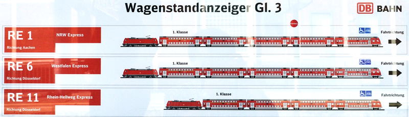 2010 Ruhr地方の鉄道 Part I: REに活躍する機関車 2010.7訪問 by 南那 轟 ![]() Bochum Hbfを通るREは3系統あります。同駅ホームの掲示から。20010.7撮影 |